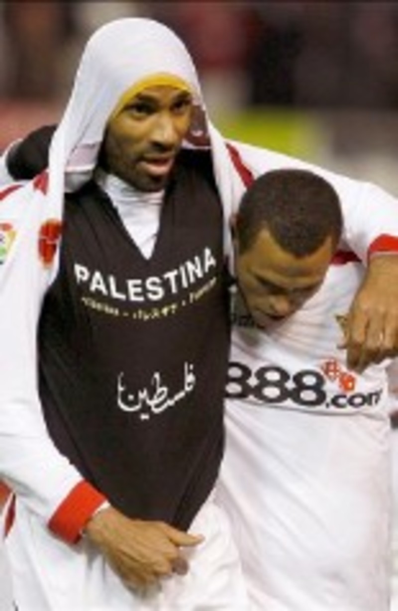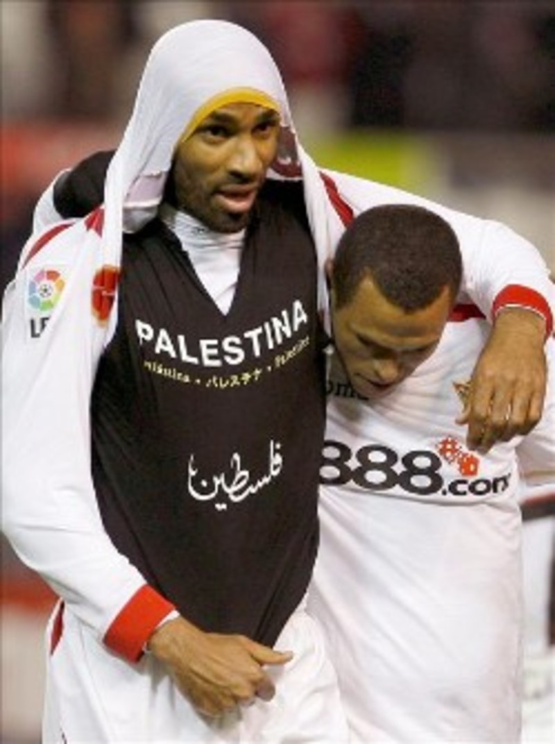 Además, al propio Kanouté le fue enseñada, igualmente, una cartulina amarilla por el colegiado del citado encuentro, después de que mostrara la referida camiseta, con la que el jugador se posicionó en el conflicto que enfrenta al Estado de Israel con la organización radical islamista Hamás, en la franja de Gaza.