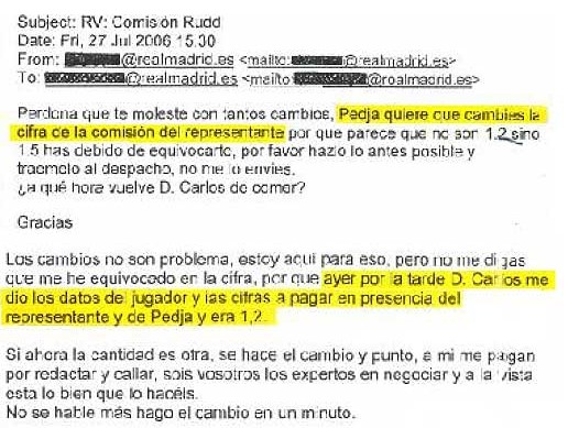Cristina Bermúdez, ex secretaria del Real Madrid desveló a la revista “Interviú” cómo actuó el club blanco en los fichajes de Ruud Van Nistelrooy y Gonzalo Higuaín. El caso más llamativo es el del holandés. Los corresos electrónicos aportados por Bermúdez demeustran que a última hora, se pidió aumentar lacomisión que se llevó Pedja Mijatovic. De 1,2 millones de euros se tradujeron a 1,5 millones de euros. Todo pasaba por la firma de Carlos Martínez de Albornoz, pero como no llegaba y se desencadenó una trifulca entre los propios trabajadores.