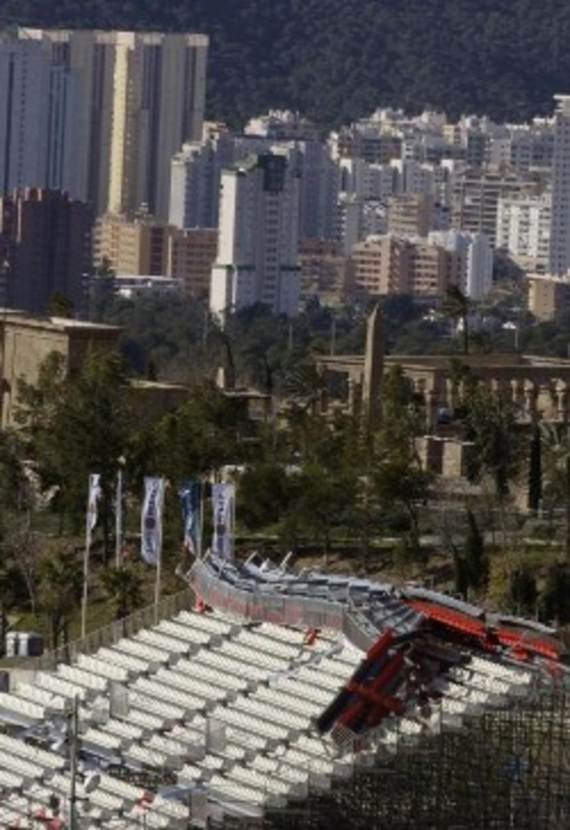 Rivas explicó que las fuertes rachas de viento de ayer, de hasta 89 kilómetros por hora, han obligado a este aplazamiento para "garantizar la seguridad" de los espectadores, pero dejó claro que en cuanto amaine el viento comenzarán los trabajos para reparar la zona dañada de la estructura, especialmente instalada en el parking de Terra Mítica para esta eliminatoria.