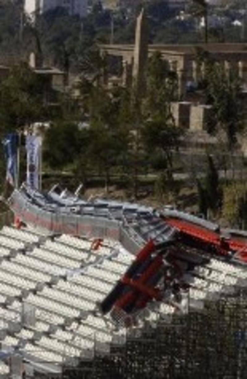 "Hemos revisado cada dos horas toda la instalación y la estructura principal no presenta daños. Es pesada y permite el paso del viento. Los daños están en las bancadas de las sillas y los cierres del estadio pues son ligeras estructuras metálicas y de madera, que han hecho efecto vela y la presión del aire las ha levantado por lo que los cerramientos están doblados", explicó.