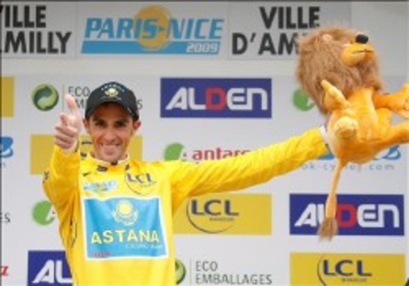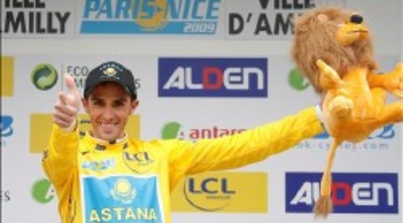 El español Alberto Contador (Astana) debutó con victoria en la sexagésima séptima edición de la París Niza al llevarse la contrarreloj inicial de 9,3 kilómetros en la localidad de Amilly, lo que le permitió situarse como líder de la prueba francesa.