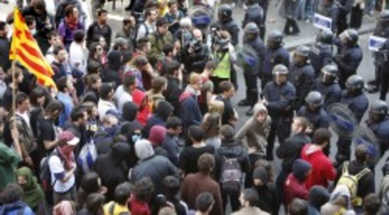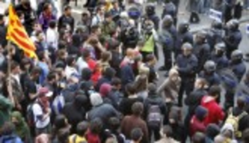 Los anti Bolonia y los Mossos protagonizan una jornada de tensión sin incidentes