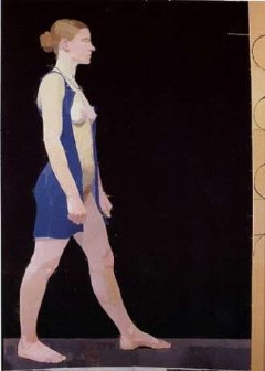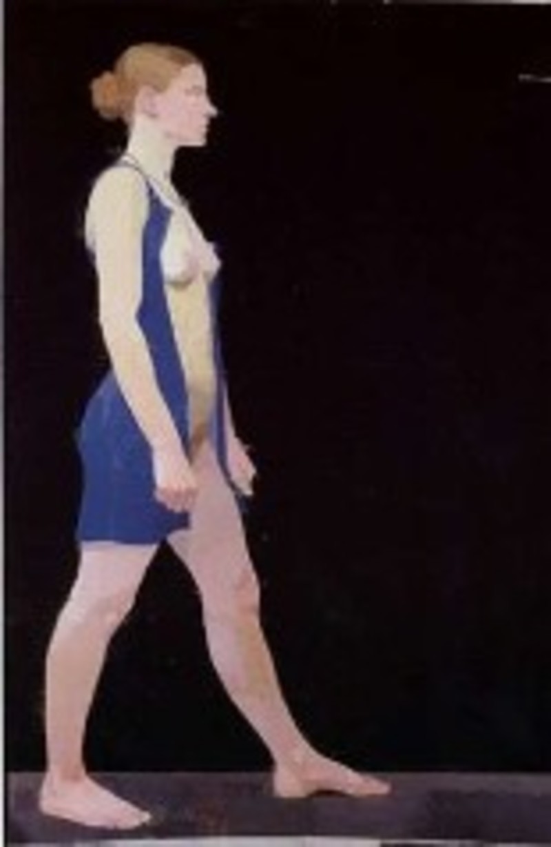 Una galería londinense pide 600.000 libras (unos 660.000 euros) por el cuadro titulado "Desnudo caminando, Vestido Azul", un desnudo juvenil de la esposa del ex primer ministro británico Tony Blair.