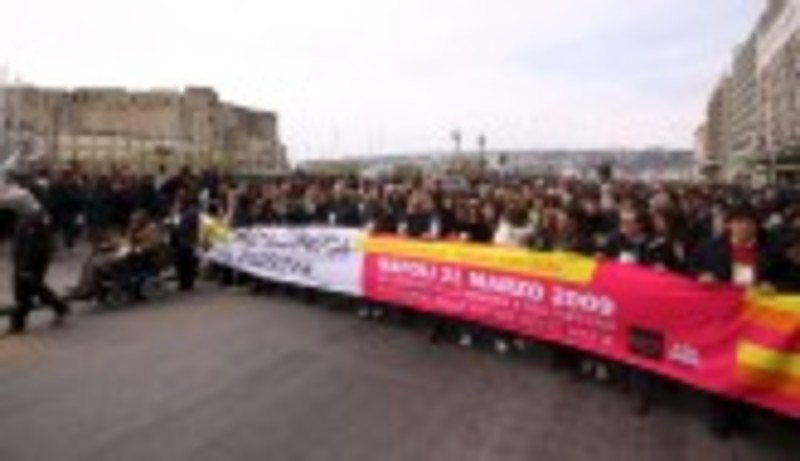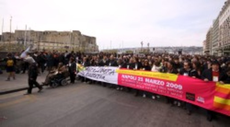 "Esta es sobre todo una jornada de compromiso y todos los jóvenes que están aquí dan muestras de una fortísima esperanza", dijo la alcaldesa de Nápoles, Rosa Russo Iervolino, durante la marcha, en declaraciones que recogen hoy los medios de comunicación locales.