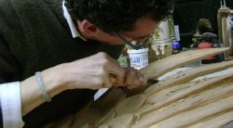 Jaime Babío tiene su pequeño taller en Sevilla, cerca de la Macarena. Hace 17 años, en 1992, comenzó a caminar de la mano del consagrado Antonio Dubé de Luque, con quien estuvo aprendiendo el oficio durante seis años. Ahora es él quien enseña el arte de la gubia a sus aprendices.