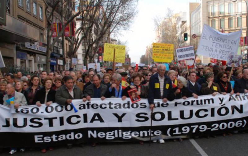 Afectados por este caso venidos de toda España han completado el recorrido Moncloa- Plaza de España de la capital para pedir una solución al Gobierno. De hecho, la gran mayoría de las pancartas criticaban el silencio y la pasividad del Ejecutivo de Zapatero en este asunto.