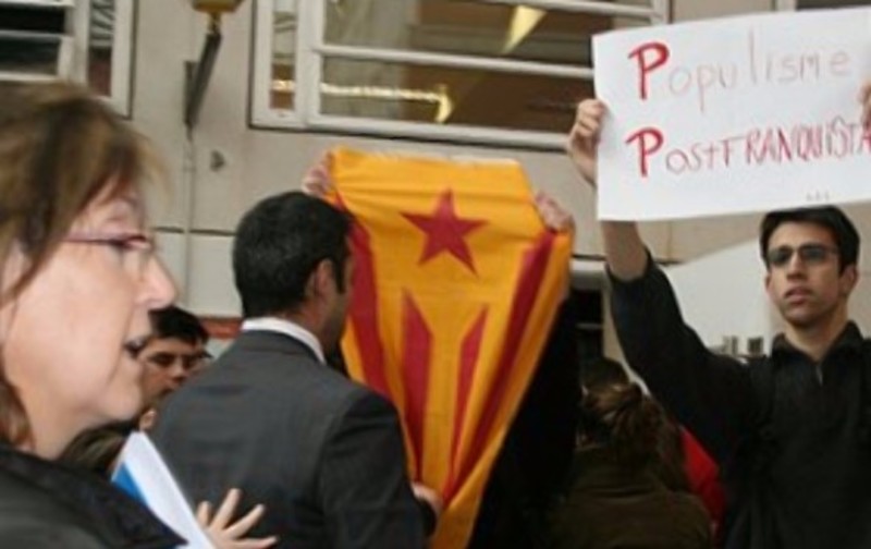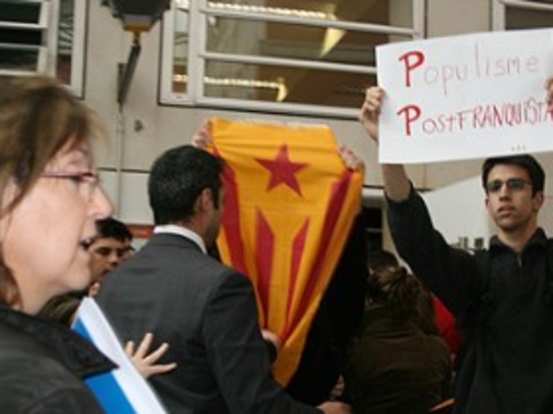 Antes de el altercado, se vivieron otros momentos de tensión, con empujones incluidos, entre los agentes y una decena de esos jóvenes, que llevaban carteles con lemas como "Els Països Catalans no son Espanya" (Los países catalanes no son España) y que pretendían impedir la entrada de Nadal en el aula de la Universidad Pompeu Fabra.