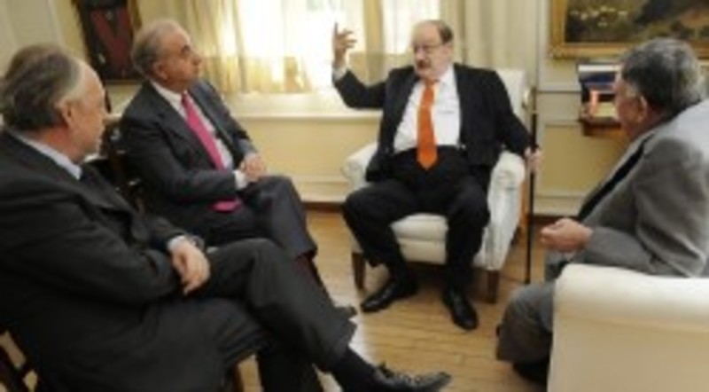 El novelista y semiólogo Umberto Eco, Premio Príncipe de Asturias de Comunicación y Humanidades, ha visitado Madrid para recoger la Medalla de Oro del Círculo de Bellas Artes. Antes de partir a Italia, el reconocido escritor y filósofo ha conversado con el académico y presidente de EL IMPARCIAL, Luis María Anson; el presidente de la Fundación Ortega y Gasset, José Varela Ortega; y el catedrático Jorge Lozano.