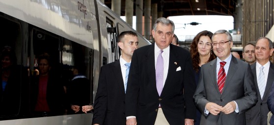José Blanco, que viajó hoy de Madrid a Zaragoza en un Talgo 102 acompañado de al