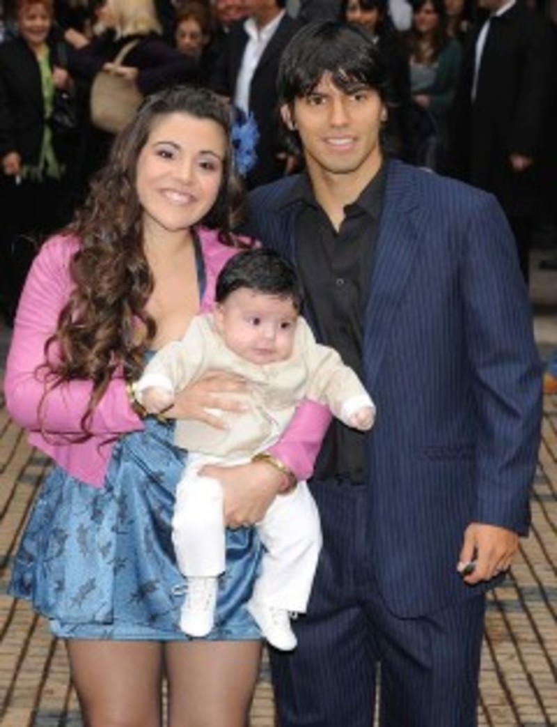 El "Kun" Agüero y Giannina Maradona bautizan a su hijo Benjamín