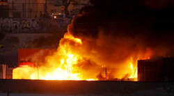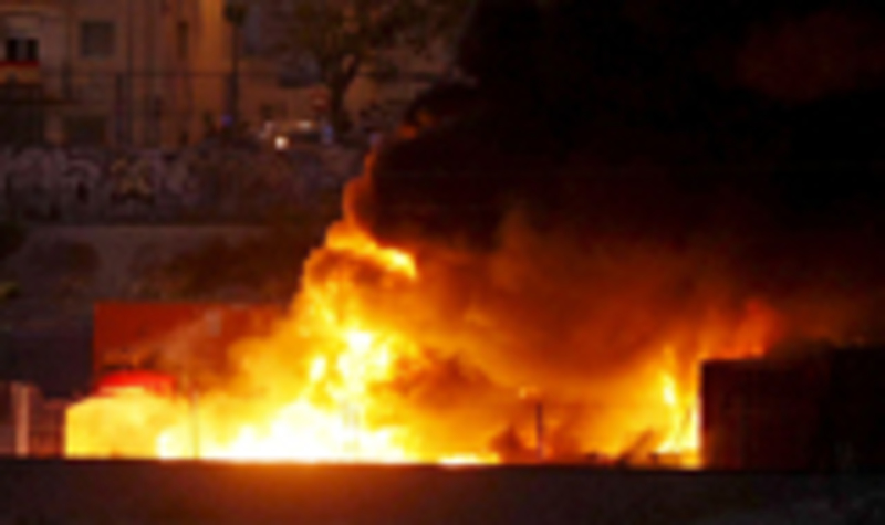 Al parecer, la explosión de dos botellas de acetileno apiladas en un solar cercano a las vías ha originado un incendio que ha afectado a una máquina de obra del AVE y a tres contenedores que albergaban residuos de obras y una botella de gasóleo, lo que ha causado una segunda deflagración.