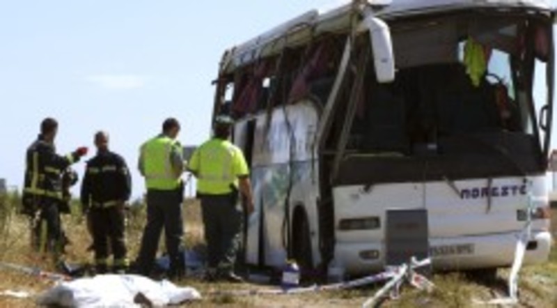 Mueren tres personas al volcar un autocar en Miajadas (Cáceres)