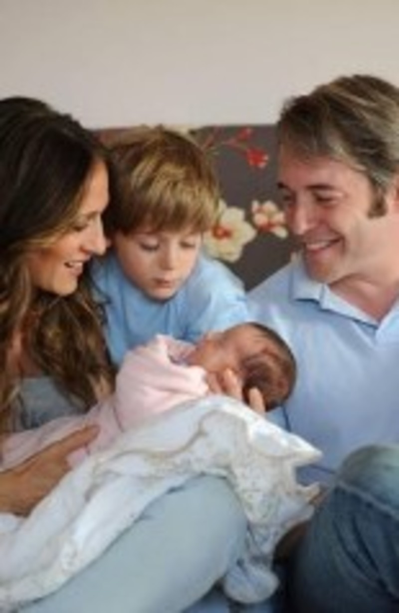 Nueva York muestra a una familia feliz: Parker y Broderick sonrien sujetando en sus brazos cada uno a una niña. El hijo de 6 años de la pareja, James Wilkie, permanece justo detrás de ellos mirando dulcemente a una de sus nuevas hermanas.