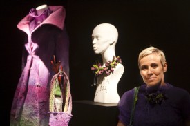 Como muestra, la diseñadora Nuria Conesa, ha diseñado el vestido, abrigo y accesorios que ella cree que habría confeccionado Balencaiga para una sirena del mar Cantábrico, con colores y tejidos cálidos.