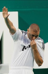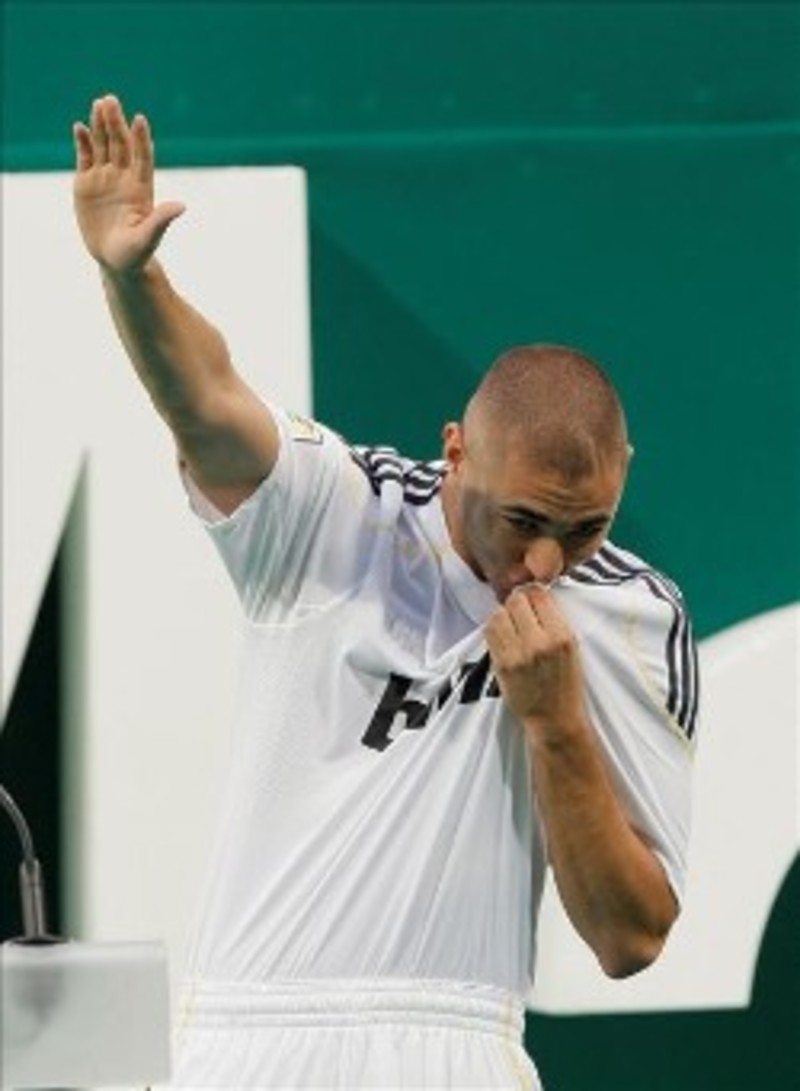 El delantero francés Karim Benzema, el hasta ahora último fichaje de la segunda etapa presidencial de Florentino Pérez, se presentó este jueves oficialmente como nuevo jugador del Real Madrid, siendo el único de los nuevos fichajes que lo hizo sin un número dorsal en su camiseta.