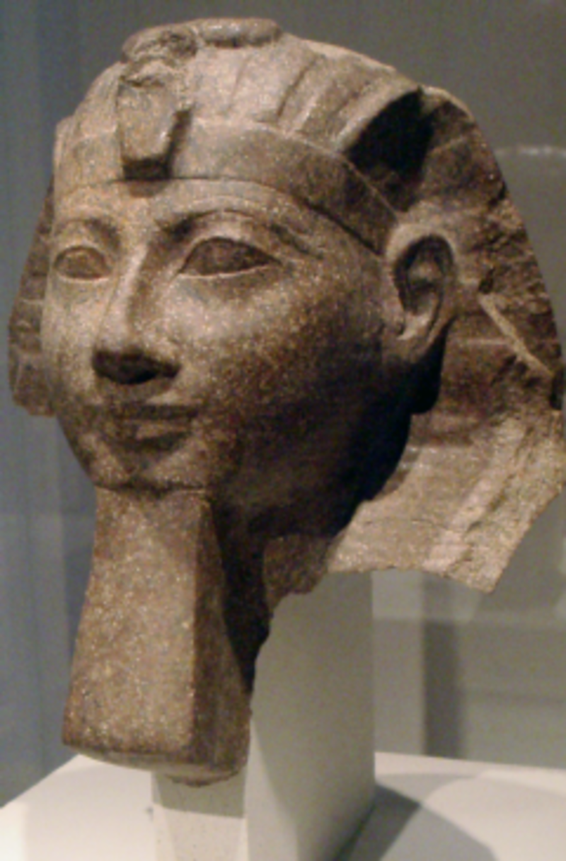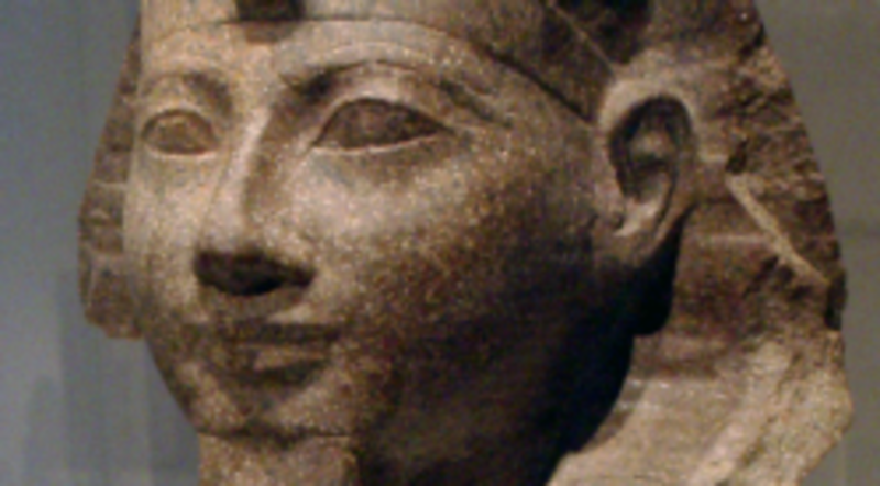 Hija de Tutmosis I, esposa de Tutmosis II y madrastra de Tutmosis III, Hatshepsut, cuyo nombre significa "la unidad de Amón delante de los nobles", fue la reina-faraón que gobernó durante más tiempo (1502-1482 a.c.) en el Antiguo Egipto. Su momia fue descubierta hace tan sólo dos años en el tercer piso del Museo de El Cairo, donde fue identificada gracias al análisis de una muela.