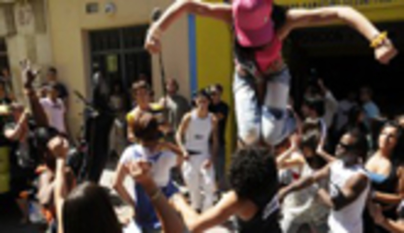 atronar la calle. Con la emoción contenida de todo el día, los participantes dieron una más que cálida bienvenida a la directora. Por fin llegaba su momento. Todos ellos, sin excepción, se pusieron a bailar como locos en medio de la calle para tratar de conseguir un poco atención de la profesora. Unos, haciendo "portes", otros imitando pasos conocidos de la Academia, algún "breaker" en plena carretera y todo para impresionar a una impasible Lola que observaba hasta el más mínimo detalle de los chicos. Las cámaras tampoco se perdieron ningún movimiento.