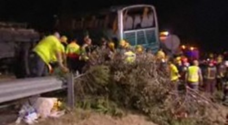 Seis personas han muerto y 39 han resultado heridas, cinco de ellas graves, cuando un autobús desbordó la calzada en una curva, volcó y embistió a un turismo en la carretera C-32 de Cataluña. La mayoría de pasajeros eran turistas holandeses.