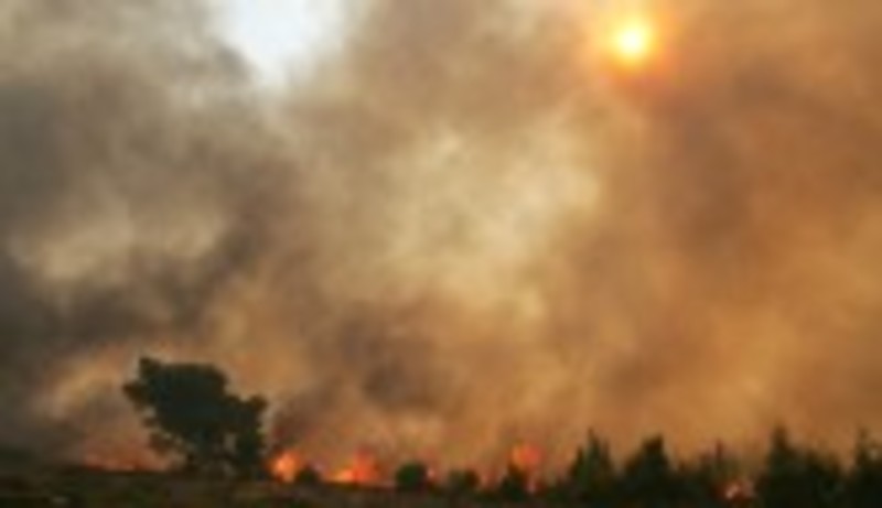 monte Kitharona, mantiene en vilo a los equipos anti-incendios, debido a los fuertes vientos de hasta 70 kilómetros por hora.