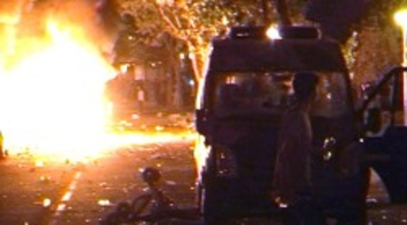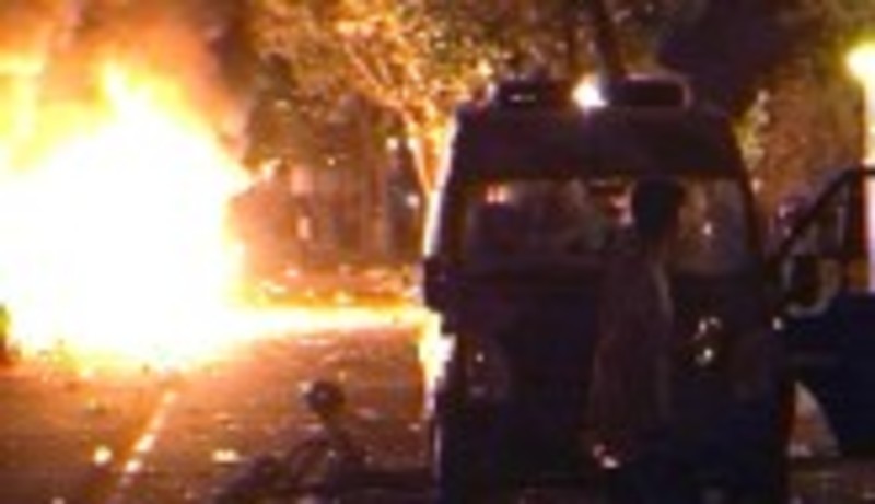 Los jóvenes se enfrentaron a los agentes, a los que llegaron a arrinconar, rompieron mobiliario urbano, quemaron contenedores y dos coches de Policía, dañaron varios más e intentaron asaltar la Comisaría de la localidad.