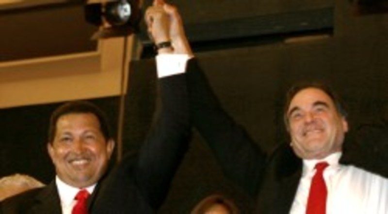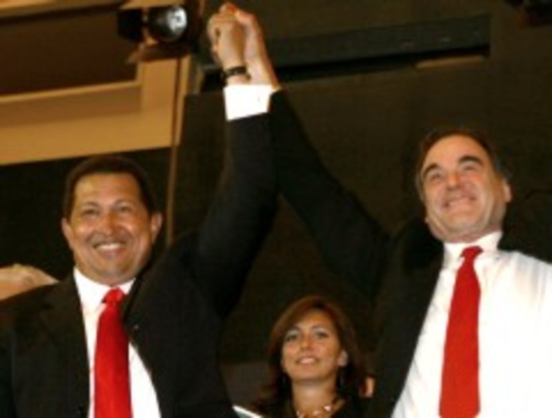 El director de "Platoon" o "Wall Street", cuya segunda parte comenzará a rodar próximamente, estuvo acompañado en Venecia por el mandatario venezolano, que tiene previsto visitar España el próximo viernes en una rápida escala, que aprovechará para entrevistarse con el jefe del gobierno español, José Luis Rodríguez Zapatero.