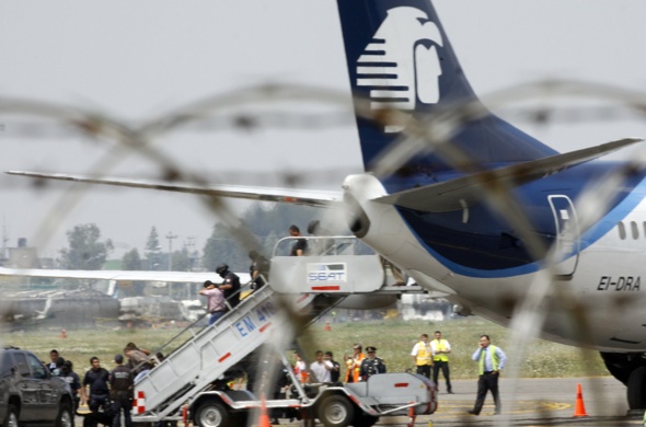 aeropuerto de Ciudad de México, a donde se dirigía el vuelo, pero al no poder entrar en la cabina no le fue posible obligarlo. La aeronave descendió, y tras una negociación en la que insistía en hablar con Calderón, fue sometido por las fuerzas federales de seguridad.