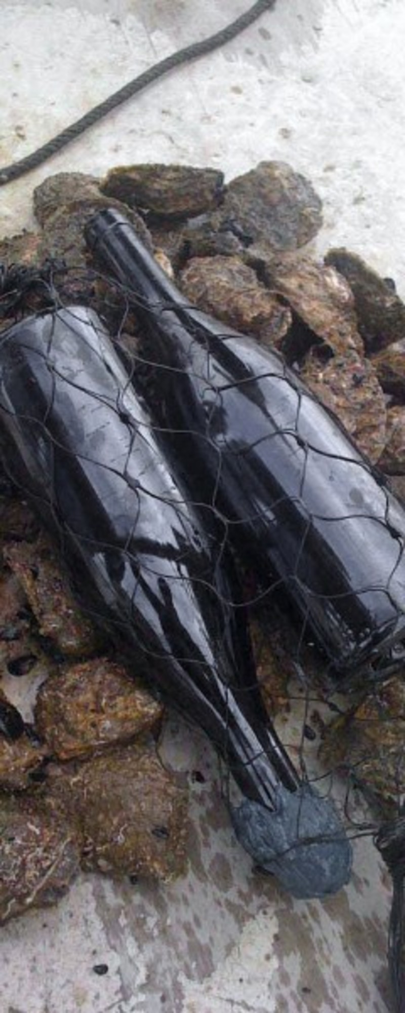 Las botellas se colocaron a la misma profundidad que las ostras, a 5,5 metros y permanecieron sumergidas entre 60 y 176 días. Se colgaron el día 3 de marzo de este año, y en total se introdujeron en el mar diez botellas en cinco redes con dos botellas cada una. La idea surgió porque el bodeguero pensó que el mar se podría utilizar como una gran bodega con muchos beneficios que ninguna convencional puede ofrecer.