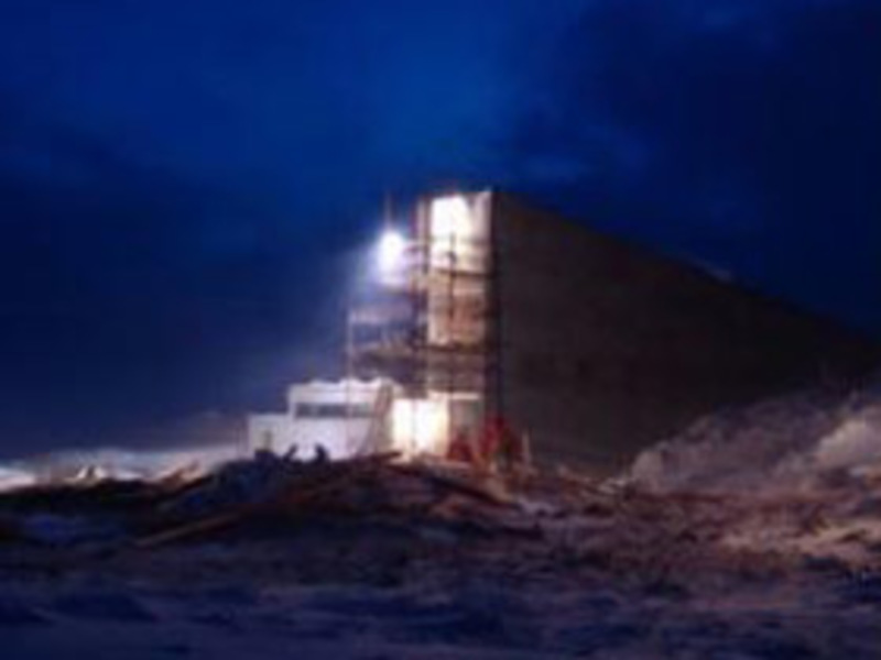 Situada cerca de Longyearbyen, en una isla del archipiélago noruego de Svalbard, la bóveda bautizada como "del fin del mundo" o "Arca de Noé", ha sido excavada a 130 metros de profundidad en una montaña de piedra arenisca, impermeable a la actividad volcánica, los terremotos, la radiación y la crecida del nivel del mar. El proyecto está impulsado por el Gobierno noruego, el Fondo Mundial para la Diversidad de Cultivos y el Banco Genético Nórdico.
