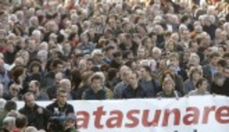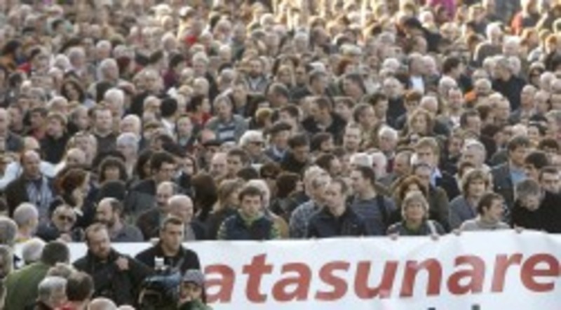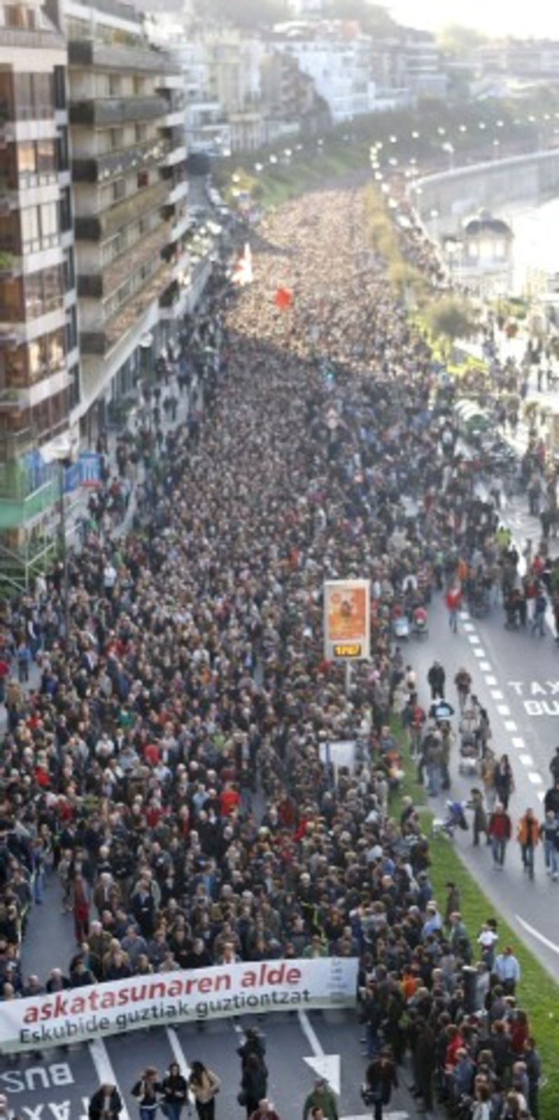 Cientos de personas se agolpaban a lo largo del Paseo de la Concha antes del comienzo de la protesta, durante la cual se han repetido fundamentalmente consignas que pedían la libertad de los detenidos y otras a favor de la independencia. Ya al final, apenas en dos o tres ocasiones, algunos manifestantes han coreado una frase habitual en las protestas de la izquierda abertzale de los últimos años: "PNV, español". Etxaide reclamaba al comienzo de la marcha "el protagonismo" de la sociedad vasca y, en su discurso final, antes de dar por cerrado el acto con "La Internacional" y el "Eusko Gudariak", agradecía el gran respaldo recibido y exigía la derogación de la Ley de Partidos por ser "un genocidio político en toda regla".