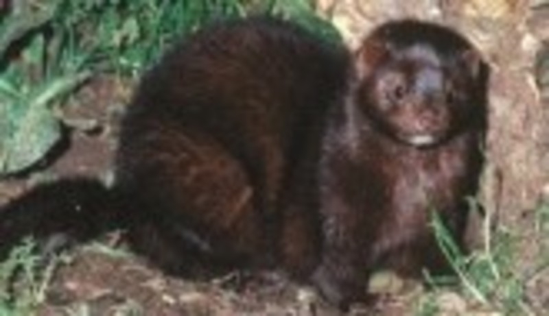 El visón americano, de tamaño más grande que el europeo, es un mamífero carnívoro de la familia de los mustélidos que se asemeja a la marta.