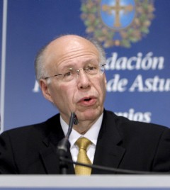 En su nombre, en el de su gran comunidad, en el de los ex rectores y autoridades que me acompañan, agradezco profundamente a la Fundación Príncipe de Asturias y al jurado correspondiente, por reconocer la calidad del trabajo académico y el compromiso social de nuestra institución. A su Alteza, el Príncipe de Asturias, y a todos ustedes, les manifiesto el gran significado que tiene para nosotros esta ocasión.