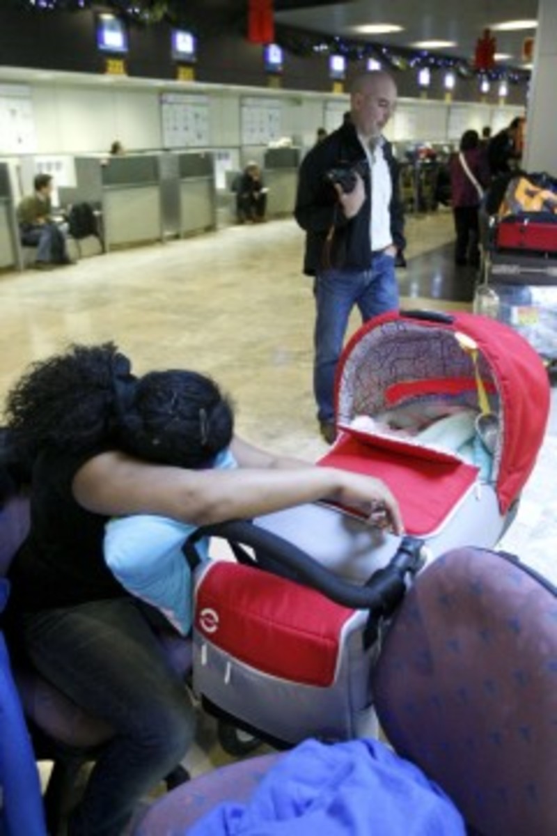 Un grupo pasajeros ha cortado durante más de media hora un tramo del vial de llegadas de la Terminal 1 del aeropuerto de Madrid-Barajas, y se ha enfrentado verbalmente a una unidad de antidisturbios, que finalmente ha logrado desalojarles sin emplear la fuerza. A medida que pasan las horas, los ánimos se van calentando y los pasajeros se quejan especialmente de que nadie les informa en qué vuelo y cuándo van a regresar a sus países de origen para pasar la Navidad con sus familias.