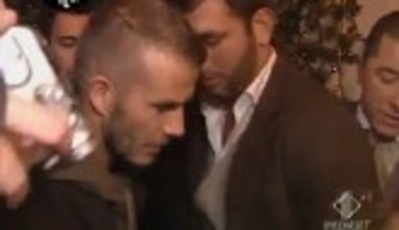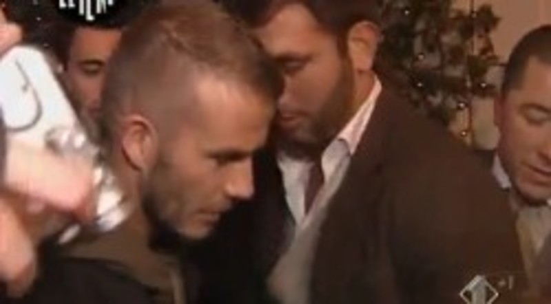 David Beckham fue víctima del acoso sexual de una periodista italiana, que le agarró la entrepierna para comprobar el tamaño de su órgano. La reacción del futbolista se tradujo en una mirada de enfado, aunque no hubo insultos. El video muestra a Elena di Cioccio, del polémico programa Las Hienas, escondida entre una multitud, que se acerca al futbolista en medio de la multitud para saber si está a la altura de protagonizar los anuncios de ropa interior de Armani.