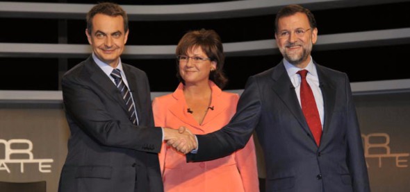PRESENTACIÓN A seis días de la cita electoral, Olga Viza conduce a plató a Zapatero y Rajoy. El debate se desarrolla estructurado en cinco bloques bien diferenciados con cuatro intervenciones por candidato. Como en la ocasión anterior, el tiempo también ha sido prefijado a 20 minutos aproximados por área temática. Cambia el orden de intervenciones, el primero que hablará será Rodríguez Zapatero.