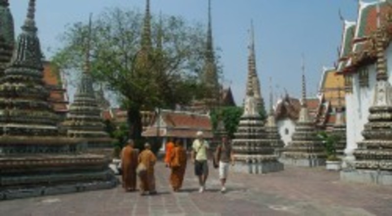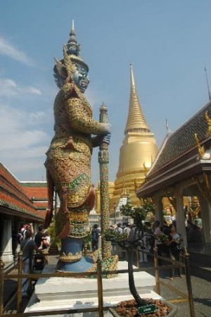 Bangkok es, lógicamente, mucho más. Una ciudad cosmopolita y ultramoderna -a pesar de sus 300 monasterios y templos thais encabezados por el Gran Palacio Imperial, los Wats del Buda reclinado y del Buda Esmeralda o el Templo del Amanecer- con ruido, polución, centros comerciales, canales, mercadillos callejeros, atascos circulatorios, calor asfixiante*, una urbe de doce millones de habitantes que cuando se saborea por primera vez resulta agobiante pero que acaba hechizando al más exigente de los turistas.
