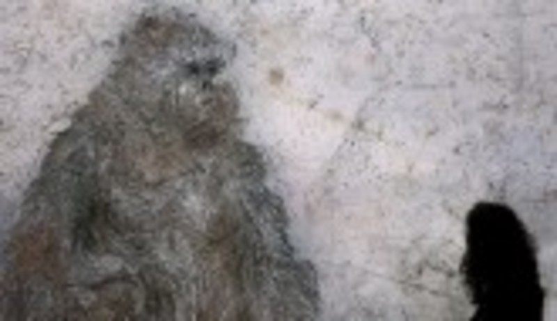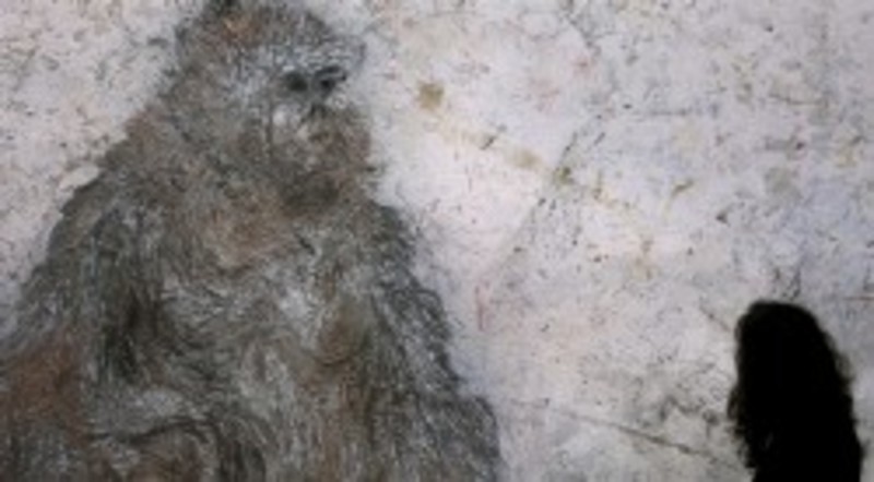 gorila solitario, se exhibió en la Bienal de Venecia de 2009 y se pintó en uno de los lienzos manchados que habían cubierto el suelo de la plataforma que el artista utilizó en Ginebra para realizar la cúpula de la Sala de los Derechos Humanos de las Naciones Unidas.