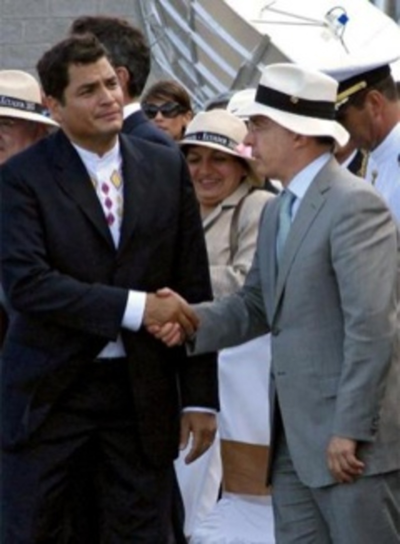 Se trató de la primera visita de Uribe a Ecuador después de que Correa rompiese relaciones diplomáticas con Colombia debido a una incursión militar colombiana en territorio de este país para atacar un campamento guerrillero, el 1 de marzo de 2008. En ese operativo murieron al menos 26 personas, entre ellas el entonces portavoz internacional de las Fuerzas Armadas Revolucionarias de Colombia (FARC), Luis Edgar Devia, alias "Raúl Reyes".