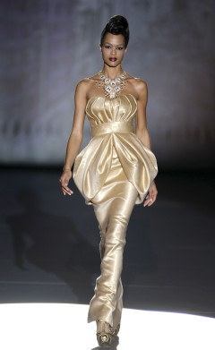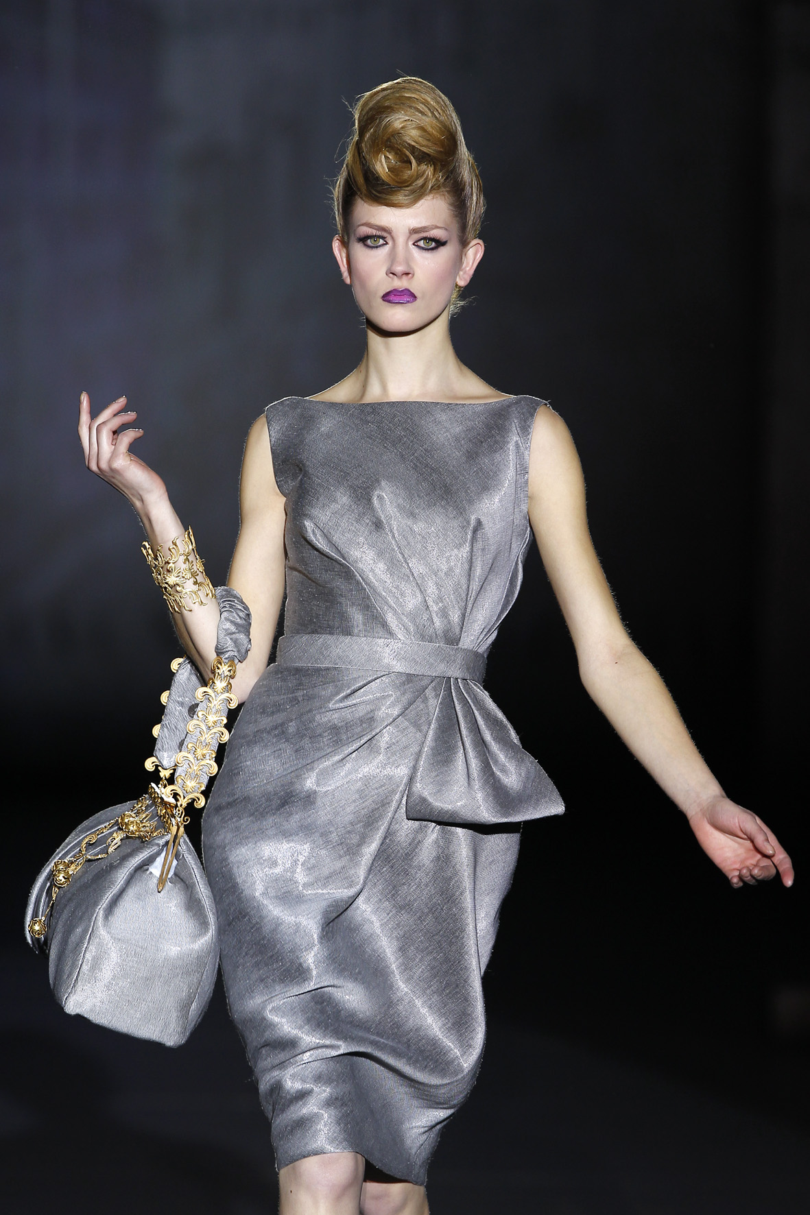 Oro, plata y negro, los colores del cine de los año 40 y 50 han copada la pasarela en el desfile de Hannibal Laguna en la Cibeles Madrid Fashion Week. Las modelos han lucido glamour, elegancia y mucho lujo en los diseños sofisticados y muy femeninos de Laguna que le han reportado un éxito rotundo.