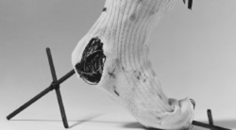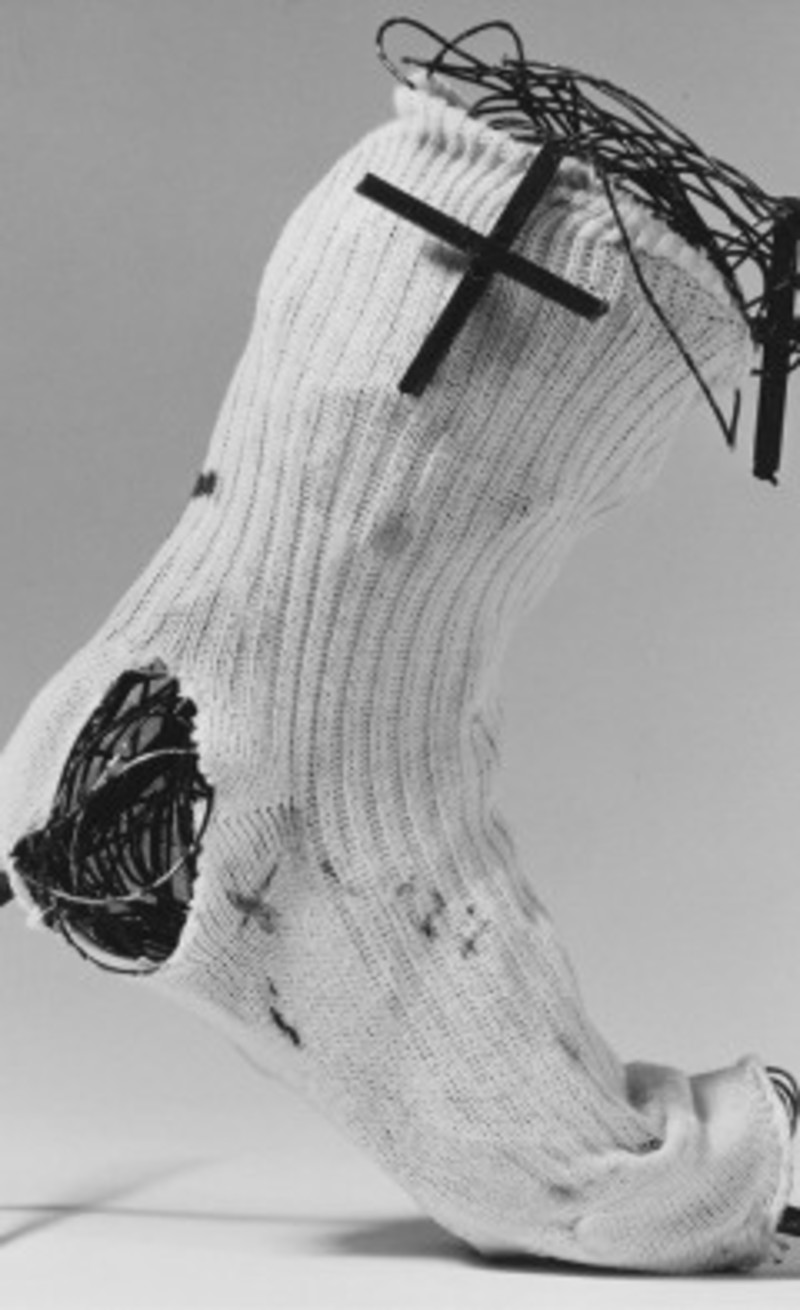 calcetín agujereado de 2,75 metros, versión reducida de otro de 18 metros ideado por el catalán para decorar el