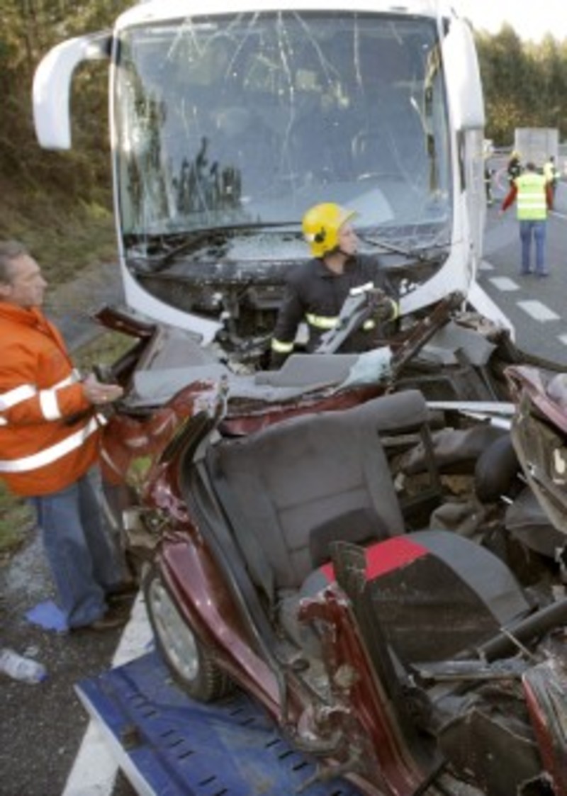 Tres muertos al chocar un coche contra un autobús en Pontevedra