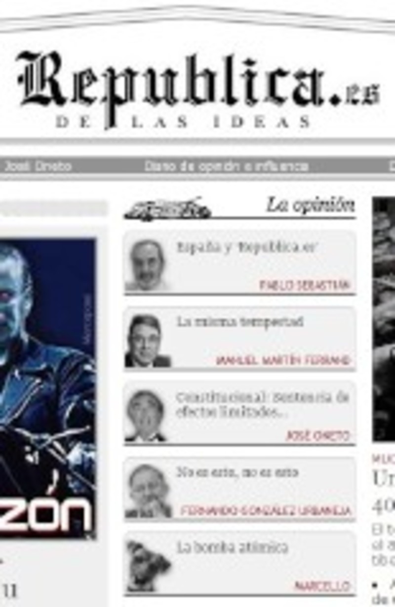 Un nuevo periódico sale este miércoles en internet con el nombre de "republica.es". Liderado por Pablo Sebastián, como presidente editor, y José Oneto (consejero editorial), "no es un panfleto republicano" y se hará un periodismo "equidistante del PSOE y del PP".