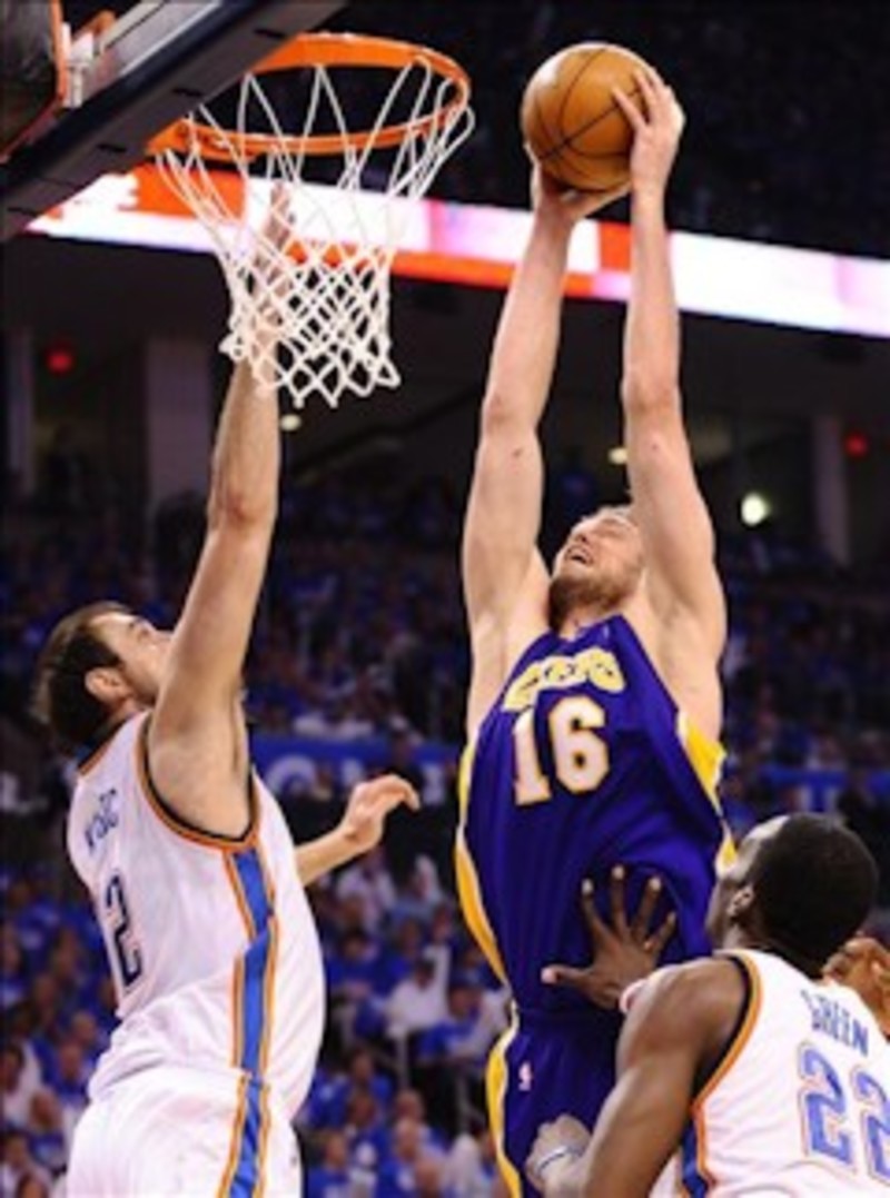 La historia se repitió, Los Ángeles Lakers tuvieron al escolta Kobe Bryant, al ala-pívot español Pau Gasol y a la suerte de su lado para vencer por 94-95 a los Thunder de Oklahoma City en el sexto partido de la eliminatoria de la Conferencia Oeste que ganaron por 4-2 al mejor de siete.