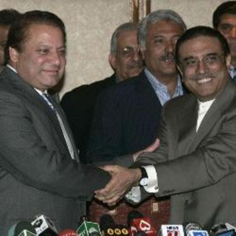 "Juntos por un Pakistán democrático" es el título que encabeza el texto suscrito por el copresidente del PPP Asif Ali Zardari y el líder de la LMP-N, el ex primer ministro Nawaz Sharif. Este acuerdo prevé también que el presidente y el vicepresidente de la Asamblea Nacional pertenezcan al PPP, mientras que la LMP-N conseguirá la presidencia y la vicepresidencia de la Asamblea de Punjab.