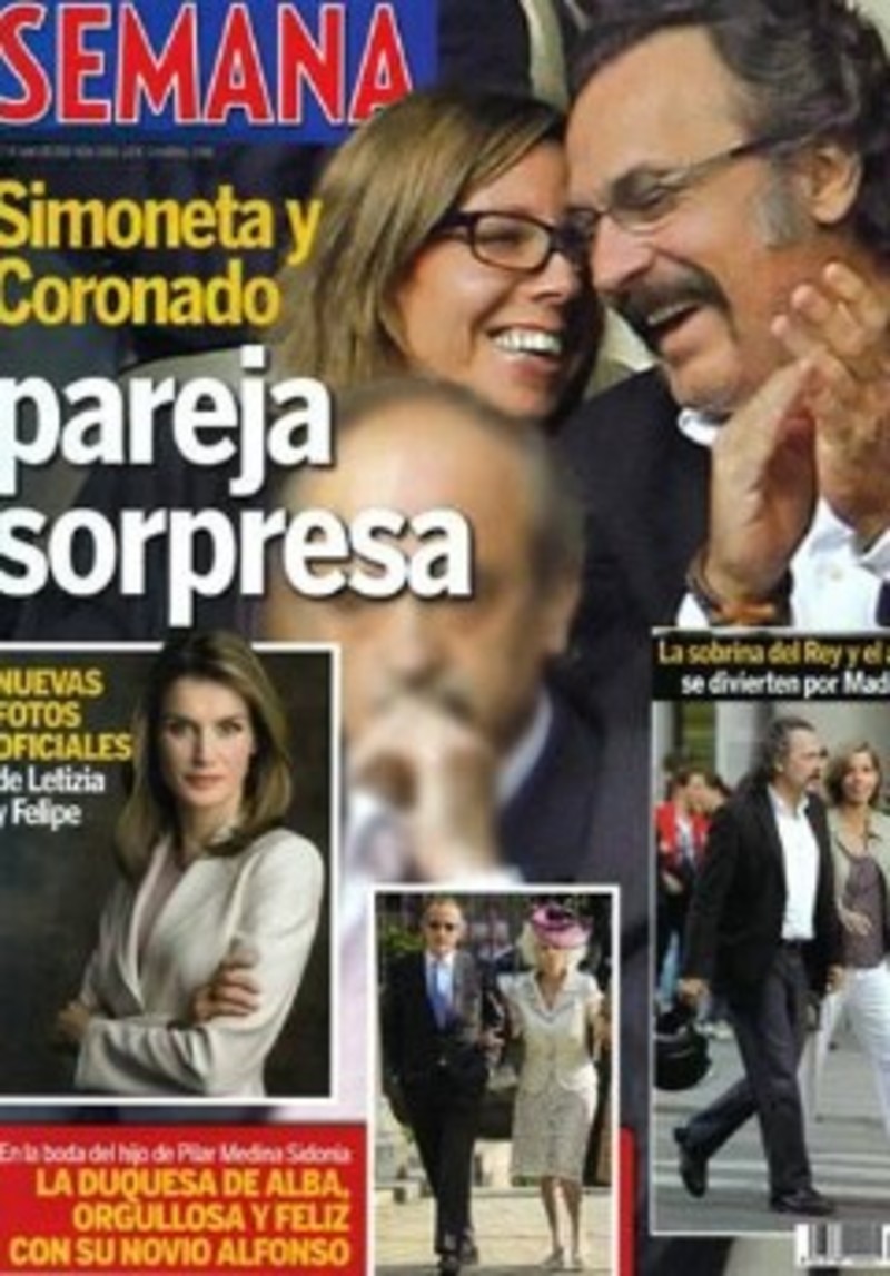 Sin embargo, la pareja más sorprendente es, quizás, la formada por el actor José Coronado y Simoneta Gómez-Acebo. La revista Semana publica unas fotos de ambos durante el partido del Real Madrid-Osasuna, en las que la química entre ellos es más que evidente, imágenes que también publica la revista Diez Minutos.