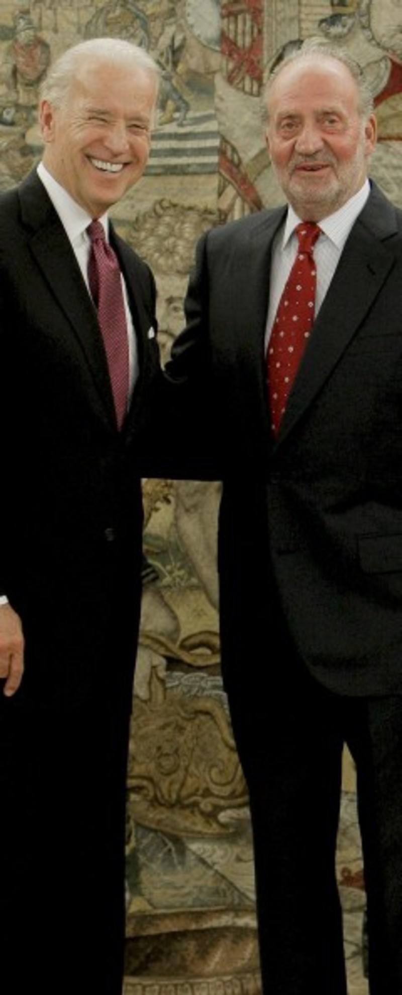A su llegada, Don Juan Carlos y el número dos de Barack Obama, ambos muy sonrientes y evidenciando las buenas relaciones que mantienen en la actualidad ambos países, se han dado un fuerte apretón de manos en el Salón de Audiencias y han posado ante los fotógrafos.