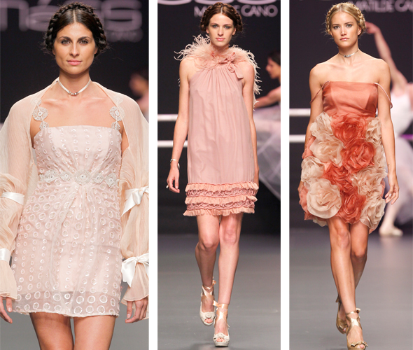 Agatha Ruiz de la Prada, en colores vivos y fieles a las líneas de la diseñadora. En el resto de los diseñadores los tejidos naturales como la seda, los tules o las gasas, los largos a media pierna y las mangas francesas son sus apuestas.