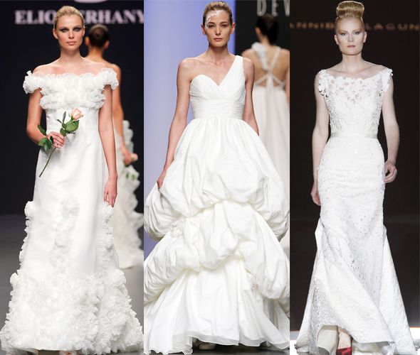 los frunces, los canesús y los encajes comparten protagonismo con los cortes rectos y las líneas sobrias, con el blanco y el crudo como factor común.