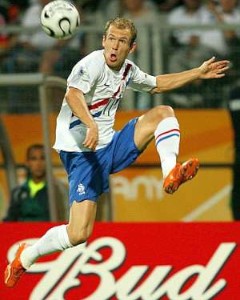 Arjen Robben: velocidad y desborde con denominación de origen para un extremo de manualEl brillante extremo zurdo es de los jugadores que llegan más en forma a Sudáfrica. Si las lesiones han constituido su gran hándicap a lo largo de su carrera, en la pasada temporada el holandés mantuvo el ritmo competitivo prácticamente sin parones, y consiguió maravillar al mundo futbolístico. Las condiciones técnicas de Robben son inmejorables. El talento natural que exhibe para driblar y desequilibrar defensores es único en la actualidad. La velocidad con la que ejecuta todos sus movimientos y la calidad para resolver con disparos de media y larga distancia le convierten en uno de los mayores atractivos de este Mundial.