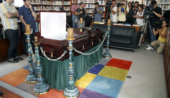 El traslado de los restos desde el avión al coche fúnebre se hizo en medio de un imponente silencio, ante la mira triste de los allegados al escritor y sin ceremonias especiales.