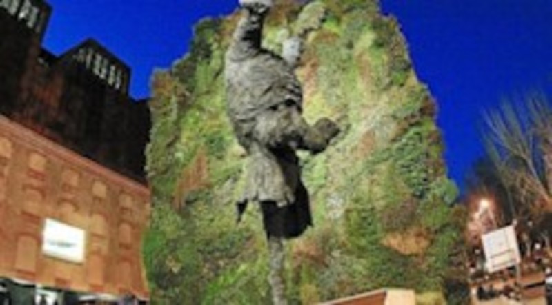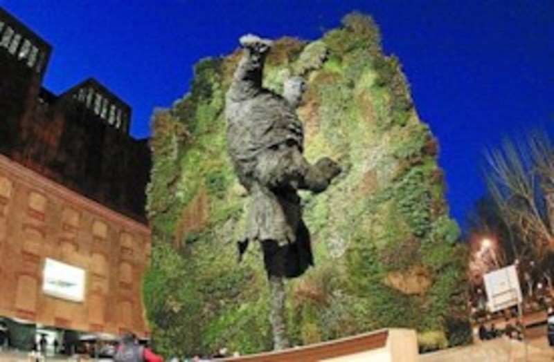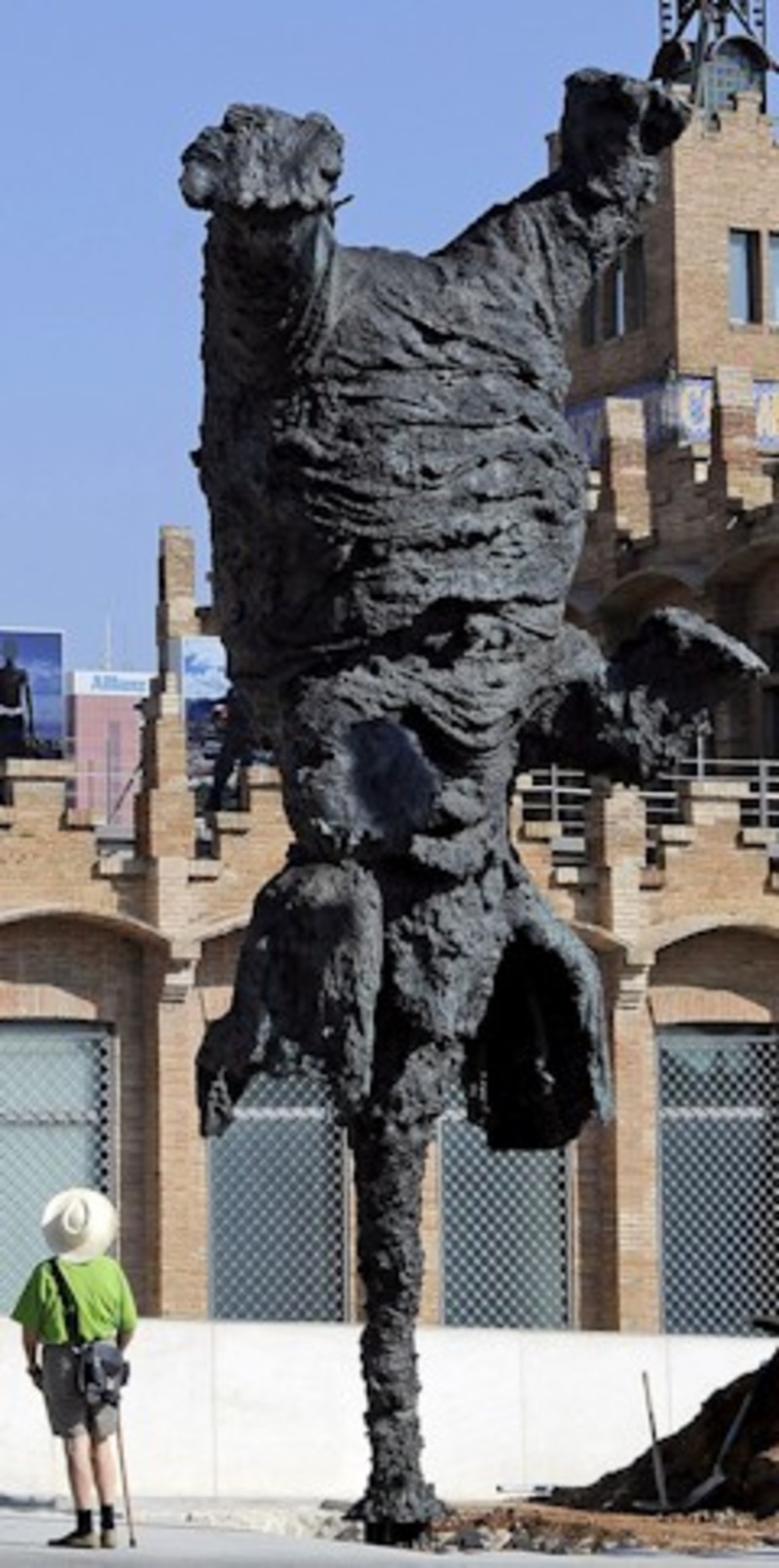 La obra, de bronce fundido y ocho metros de altura y que no se había visto antes en la ciudad condal, forma parte de la actividad más reciente del pintor, que trabaja en esculturas y pinturas de mamíferos corpulentos que se convierten en suplantaciones de él mismo.